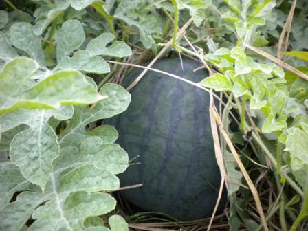 普通のスイカと黒いスイカを植えていたものが