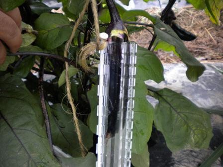 星型にはめていたナスを収穫します。