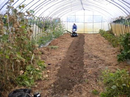 ビニールハウス内を耕して