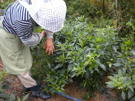 ビニールハウス内で細々とシシトウが実をつけているので、