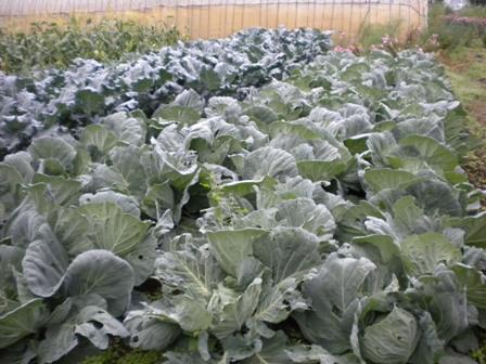キャベツの葉っぱが丸まり始めました。
