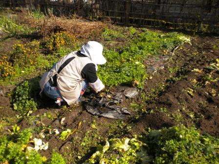草を取り除いて大切にビニールを回収します。