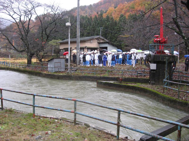 長井市立北中学校2年3組の生徒・父兄63名が、「野川の流れを学び、地域用水を考えよう」と平成19年11月18日、長井ダムと農業施設の勉強会をおこないました。