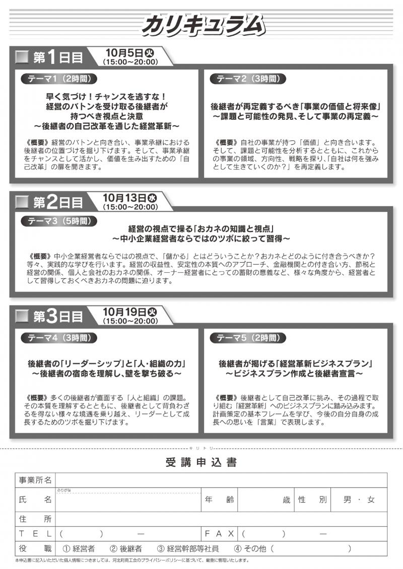 経営者になって初めて体験すること、初めて気づく課題など、それまでに心の準備をしていたつもりでも、それら事象に困惑することは多く、もっと若い時にいろいろな体験をし、もっとネットワークを広げておけばよかったと後悔する経営者は少なくありません。今後の経営の在り方として自社の現状(組織・財務・経営課題等)を的確に把握すると共に経営環境が目まぐるしく変化する中で経営環境の変化に応じた「受け身」の経営ではなく「攻め」の経営が必要不可欠となっております。この塾では受講者に新たな「気づき」をあたえ、「自己改革」を促し若手経営者・後継者に必要不可欠なノウハウを学んでいただく事を目的とし開催いたします。