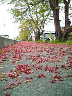 桜の木の下には、散った花びらやガクなどで、まるで赤い絨毯を敷き詰めたかのような光景が広がっていました☆