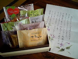 先日かじやにストールの「忘れ物」をしてお帰りになってしまったお客様から連絡があり、ご住所が宮古ということでお送りしたんですが、今朝、そのお客様から宮古の美味しい菓子折りが届きました(^^ゞ
