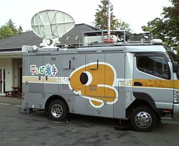 先ほど花巻温泉でテレビ岩手のロケ車を発見しました!