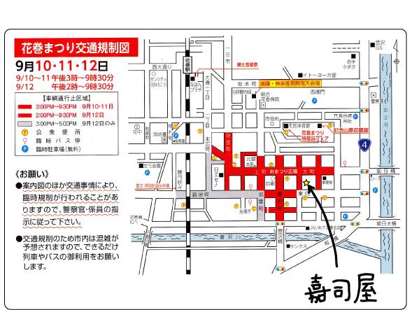 花巻祭り期間中は、かじやの辺りに交通規制がかかります!