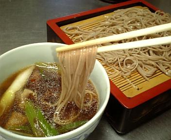 ビシッと冷たい水でしめたそばを、熱い鴨南蛮のツユにつけていただきますo(^-^)o
