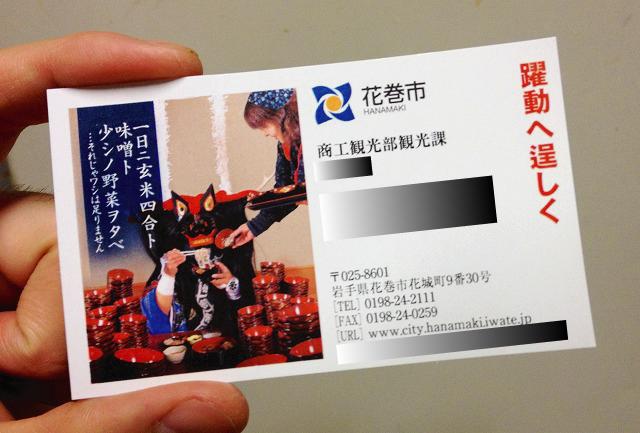 先日いわて花巻市役所観光課の方にいただいた名刺がステキだったのでご紹介♪