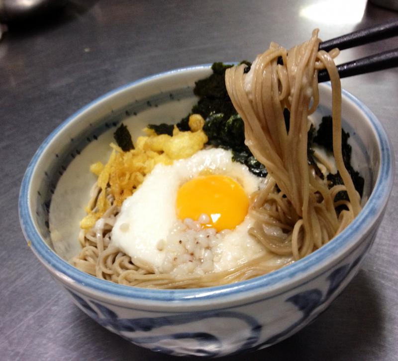 暑い暑い今日の昼ご飯は「山かけそば」にしました♪