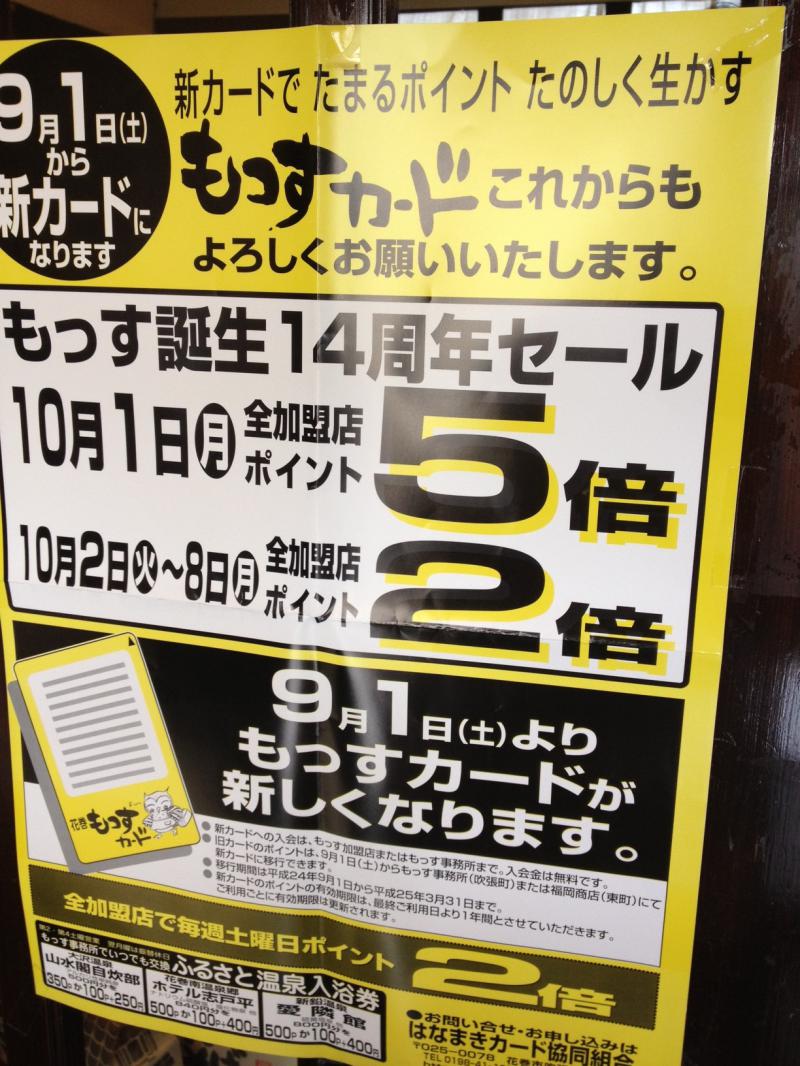 ちなみに九月からもっすカードが新しくなりましたが、まだ新しいカードに切り替えしていない方も、加盟店ですぐに作れるのでお気軽にお申し付けくださいねー(^ ^)