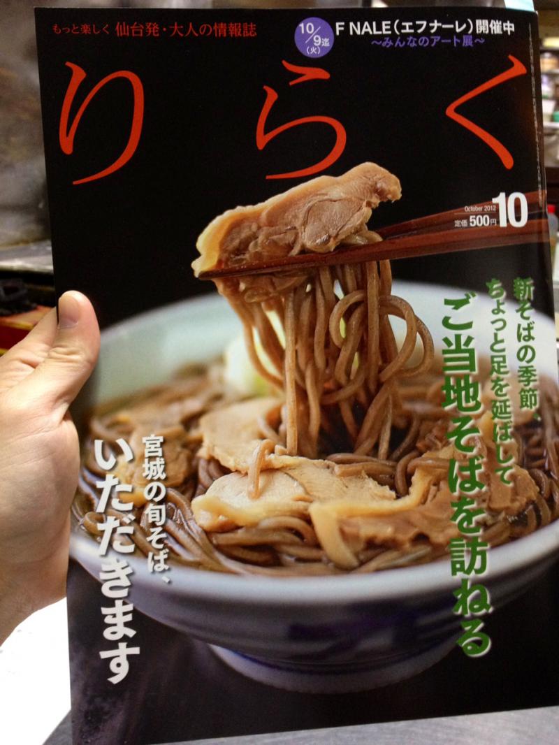 仙台発・大人の情報誌「りらく10月号」に、ご当地そばとしてかじやのわんこそばが掲載されました〜(>_<)