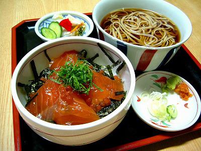 ご飯に紅葉漬けを盛り付けた「紅葉丼」とおそばのセットも人気です(^O^)/