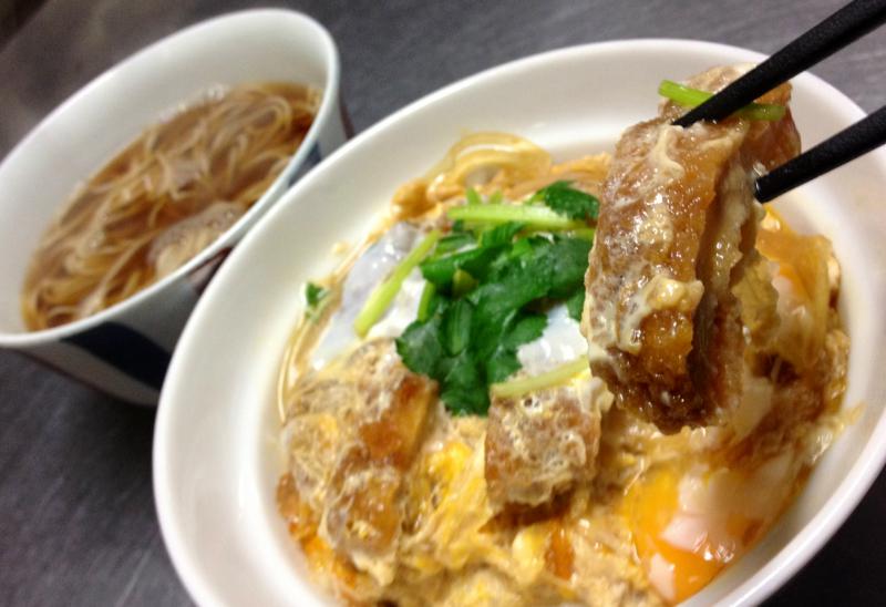 今日の昼ご飯は「白金豚のかつ丼とかけそばのセット」です♪