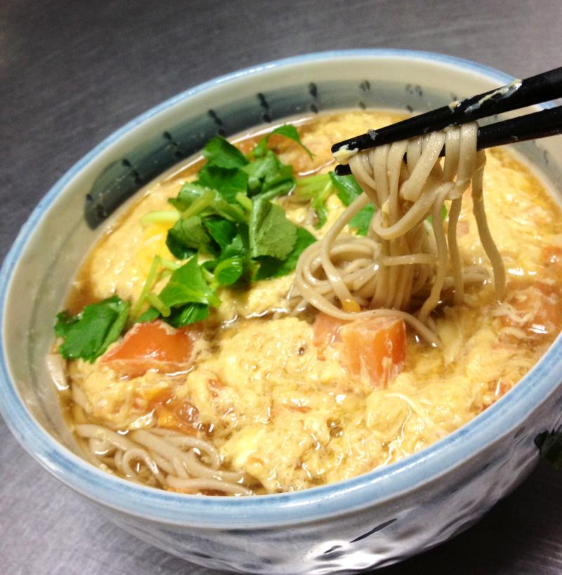 今日の昼ご飯は【トマトの玉子とじそば】です♪