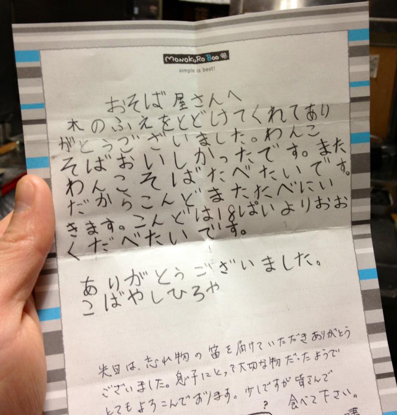 先日かじやにわんこそばを食べにきてくださったお客様の【忘れ物】を、ご自宅の福島に郵送したところ、わざわざお礼のお手紙とお菓子を送ってくださいました(*^_^*)