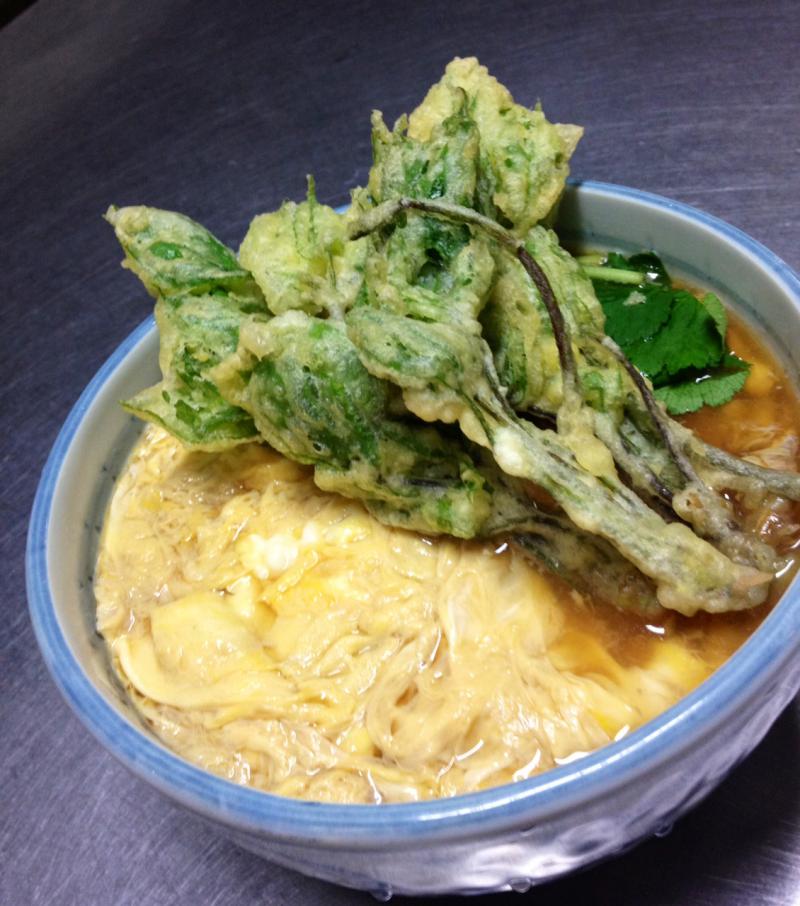 今日の昼ご飯は「コシアブラの天とじそば」です♪