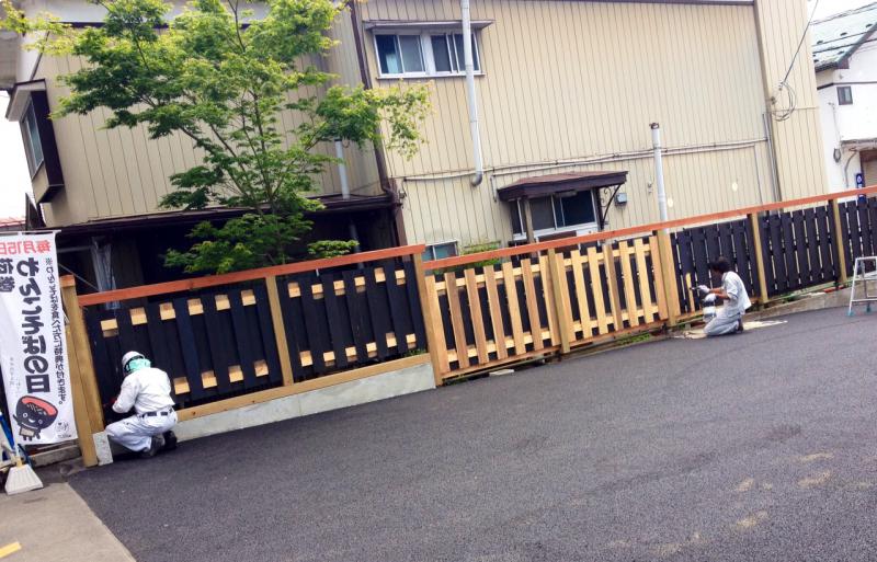 ▼●塀にペンキを塗っていますよ(o^^o)