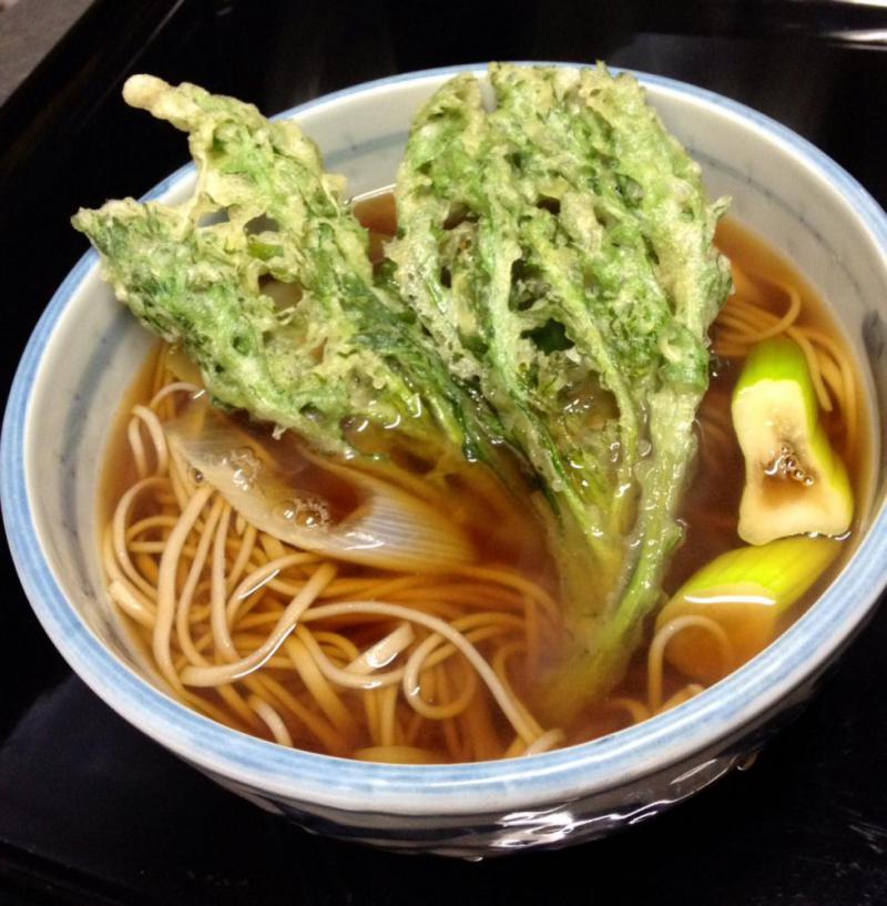 今日の昼ご飯は「春菊の天ぷらそば」です♪