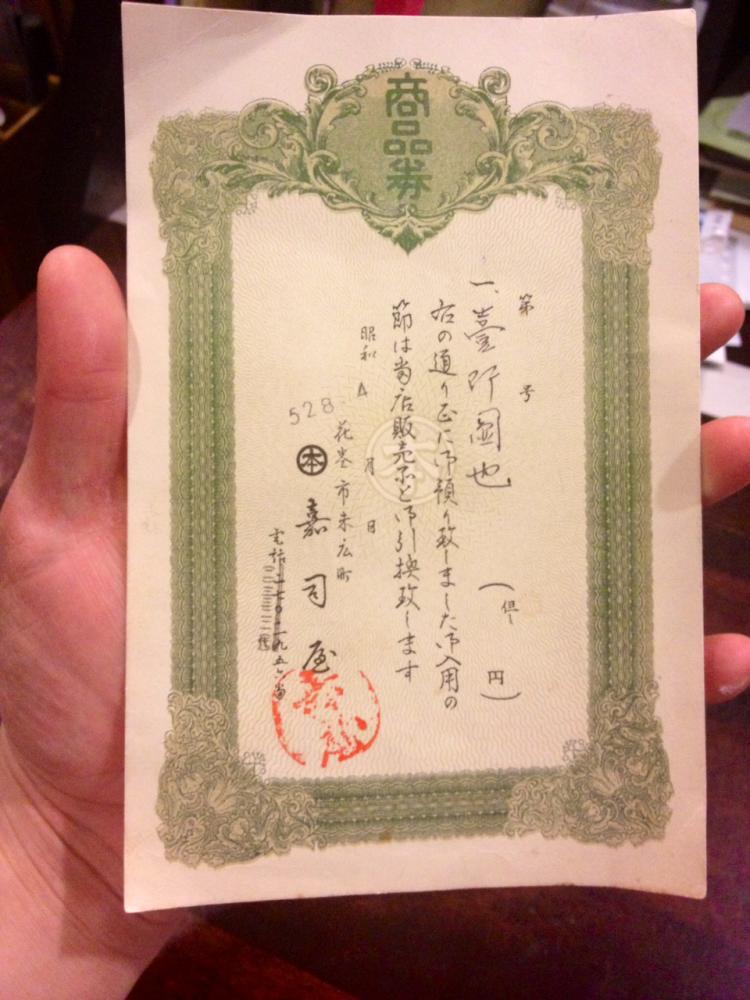 お客様から、なんと35年前のかじやの商品券をいただきました(*^^*)