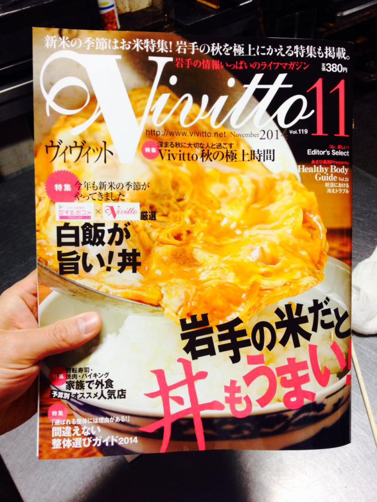先日発行されました【月刊Vivitto(ヴィヴィット)11月号】にかじやの「白金豚かつ丼」が掲載されております♪