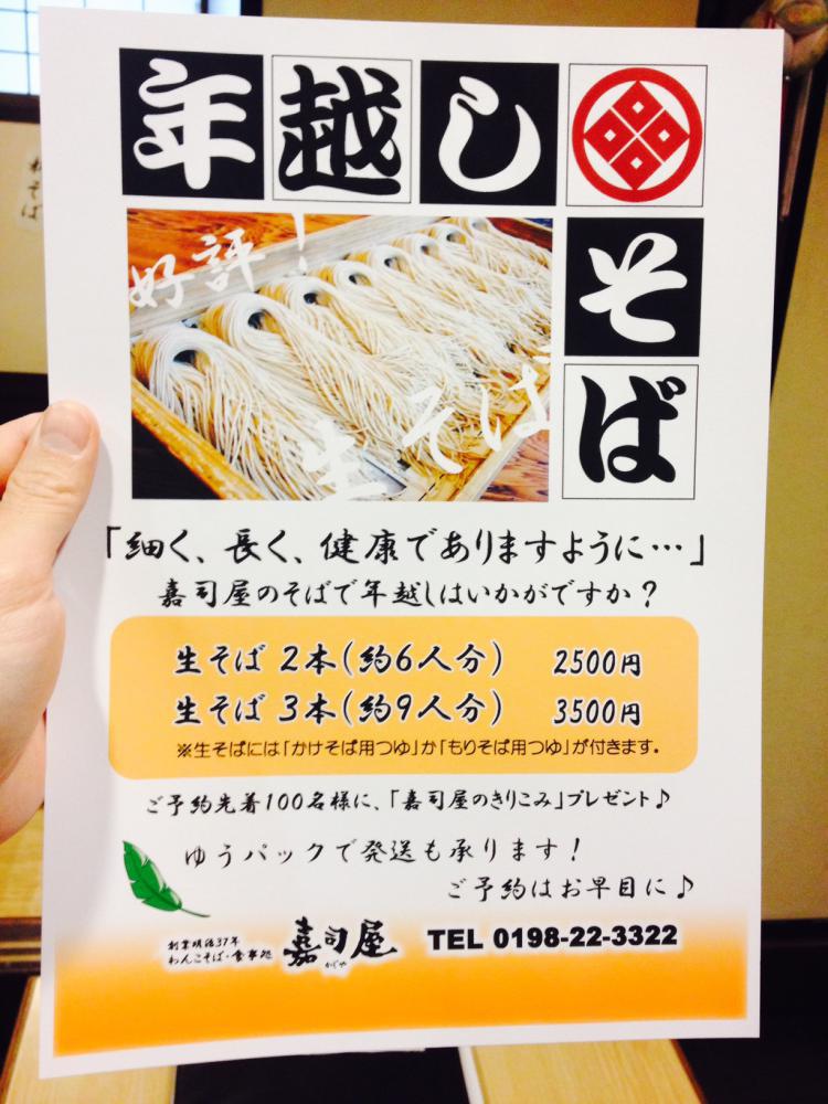 かじやでは年越し蕎麦の予約受付を開始しておりますよ(^○^)今年もどうぞよろしくお願いします♪