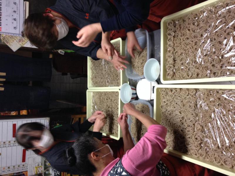 明日のわんこそば全日本大会用のそば準備中!かじやのざわちん軍団(笑)