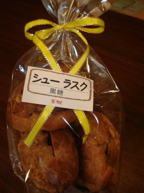 シューの皮に、溶かしバターをぬって、黒糖をふりかけて パリッと焼き上げました。