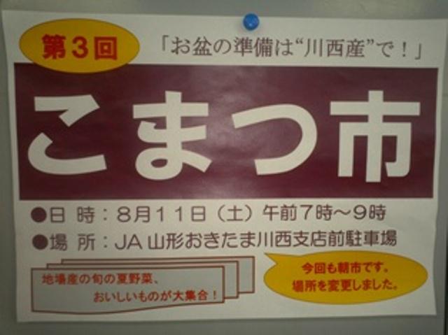 今日、川西町の町内で「こまつ市」というチラシを見つけました。