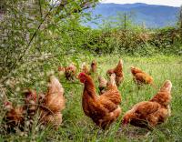 菅野農園には1,000羽のニワトリたちがいますが、暑さが原因では1羽も犠牲になっていません。工業養鶏のように狭いカゴに入れられて身動きが出来なくなっている訳ではなく、お日様の動きに合わせて、日陰の涼しい所を選んですごしているからだと思います。 菅野農園では放牧養鶏。でもでもこの季節、鶏舎の扉を開けても、日中は外に出ようとはしません。風通しのいい鶏舎の中ですごしています。それももう少しですね。やっぱりニワトリ達には秋の野花の咲く野原が似合います。 |