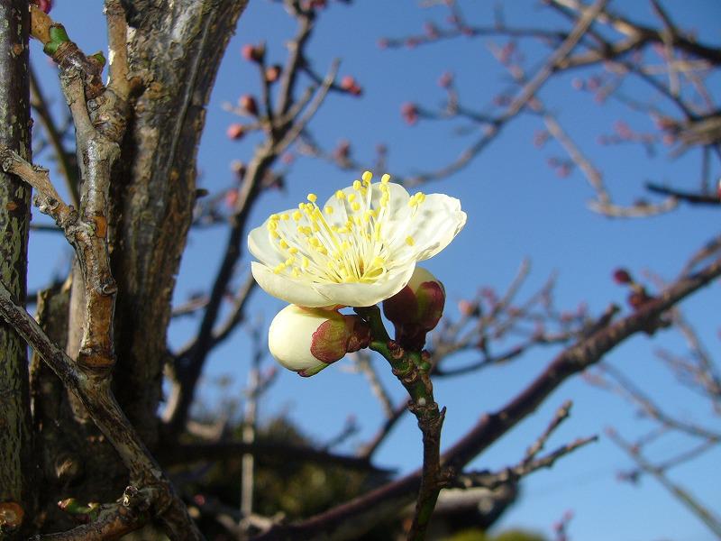 2月3日には、雪に覆われていた白梅。