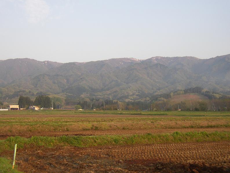 せっかくの春なのだから、畦の野花をながめ、残雪と新緑の朝日連峰の風景を楽しみながら、のんびりと作業をすすめたいのだが、周囲のペースがそれを許さない。腰の痛みに耐え二種類の堆肥を撒き続ける。レインボープラン堆肥と醗酵ケイフン。実際のところ、この作業が終われば、米作り作業の半分がかたづいたような気分になる。つらい仕事だ。