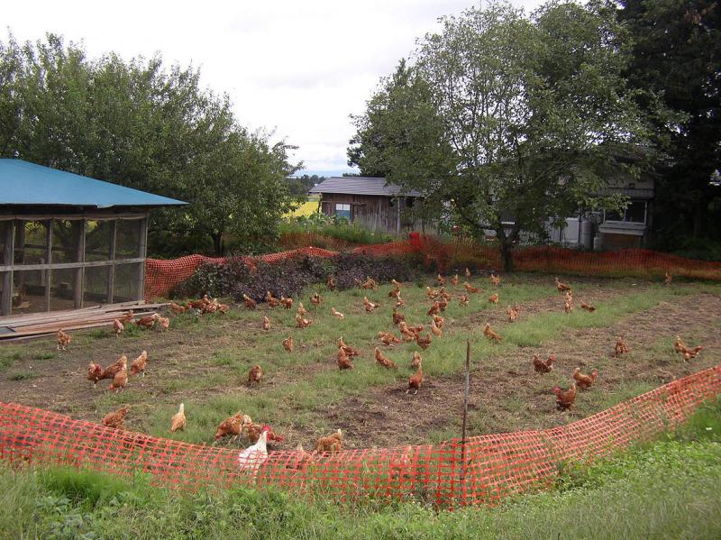 僕がこのようにニワトリ達を飼っているのは、健康でストレスの少ない毎日をおくりたいという彼等の願いと、おいしい玉子を食べたいという僕たちの願いとはかなりの点で一致すると思っているからだ。だから僕はニワトリ達にとってこのほうがいいのではないかと思えることをできるだけやるようにしてきた。鶏舎の中では一羽あたりの空間を広くとり、エサはなるべく多くの種類を与え、水は朝日連峰の地下水だ。外にでて一日中あそぶこともできる。