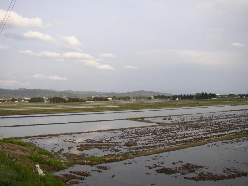 せっかくの春なのだから、畦の野花をながめ、残雪と新緑の朝日連峰の風景を楽しみながら、のんびりと作業をすすめたいのだが、周囲のペースがそれを許さない。腰の痛みに耐えながら堆肥を撒き続ける。実際のところ、この作業が終われば、米作り作業の半分がかたづいたような気分になる。つらい仕事だ。