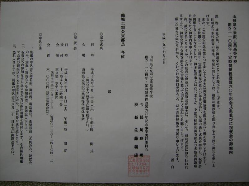 今年めでたく、我ら母校である『米工』の創立110周年・定時制課程設置60周年を迎えます。