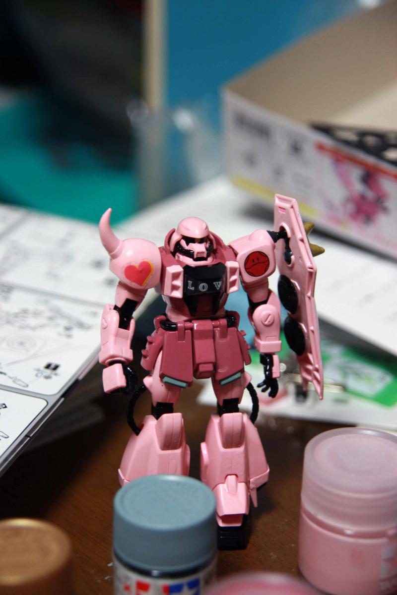 名前長いが、テレビアニメ「機動戦士ガンダム SEED DESTINY」に出てきたモビルスーツです。ミーア・キャンベルという女の子が、ラクス・クラインのふりをして慰問コンサートをするときに使われました。それでピンクに塗ってあります。