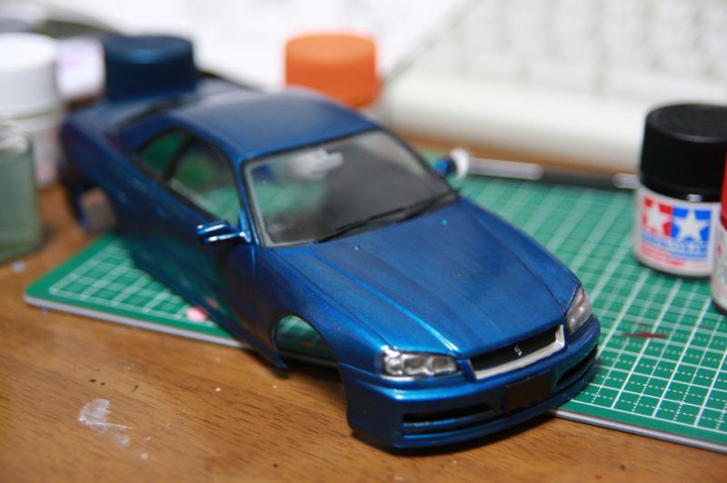 R-34は前期型と後期型があって、自分が乗っているのは後期型です。キットになったフジミのモデルも後期型がでてすぐ買いました。まあ、格好いいのは前期型だと思います。実際発売されたとき、セールスの方に見せてもらい、「20代だったら借金してでも買った」といったのを覚えています。結局、買うことになるのだから、その時に買っておけばよかったかも。後期型は発売後1年半でモデルチェンジしました。普通は3年ぐらい売っているからかなり異例のことでした。