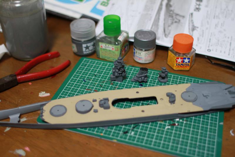 やはり最初は旗艦「大和」でしょう、というわけで戦艦大和に取り組んでいる。実は「大和」を作るのは初めてなのだ。(子供の頃は高くて買えなかった)何しろ超弩級戦艦なので船体はとても大きい。といってもスケールは1/700。上に載せるライトやその他の部品の小さいこと。これは目との戦いです。