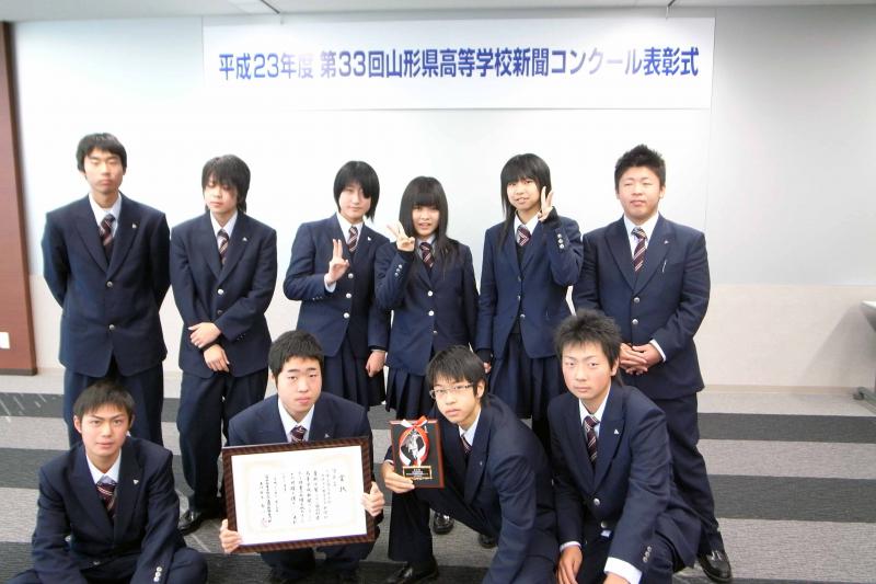 県内の私立学校でコンクールに入賞したのは本校だけでした。また、ブランケット判という普通の新聞と同じ大きさの新聞を発行しているのも本校だけでした。主に新聞の内容についてほめていただきました。新聞は、学校の活動を載せるメディアですから、良い活動をしなければ内容も良くなりません。この賞は学校の活動全体が評価されたものと思います。