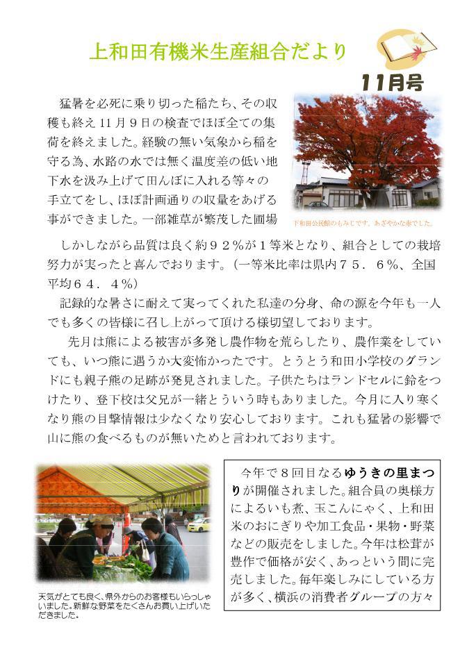▼上和田有機米生産組合だより11月号