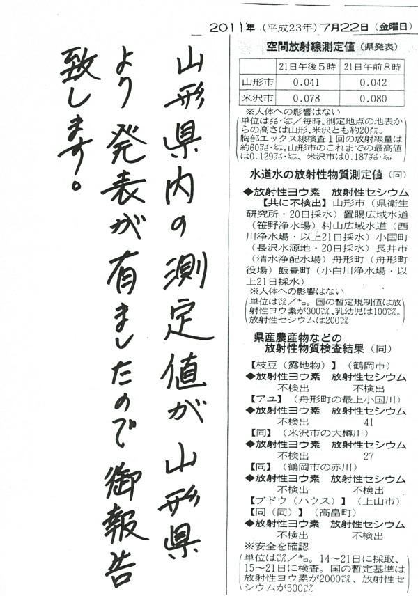 ▼放射線測定値(山形県発表)