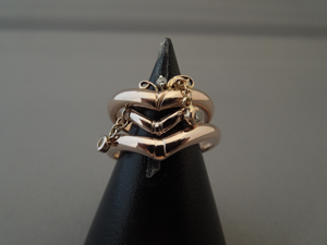 仲良く縦に並ぶ、アクセントとしてついているチェーンがかわいらしいリング...
