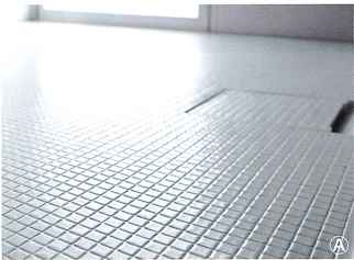 新型システムバスでは、床に細かく刻まれた溝が、洗い場の水を