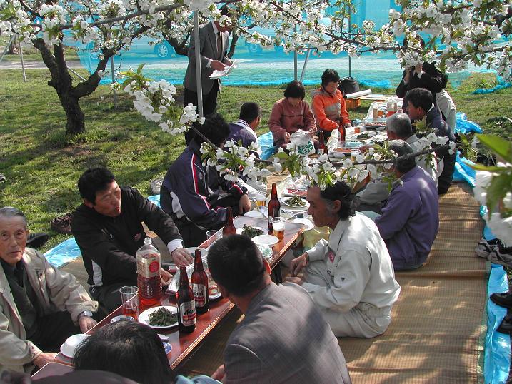 園主の皆さんが集って、満開の花の下で「お花見」が行われました。”桜”が終わり次は”さくらんぼ”。同じ時期に2回の花見ができるなんて贅沢ですよね♪