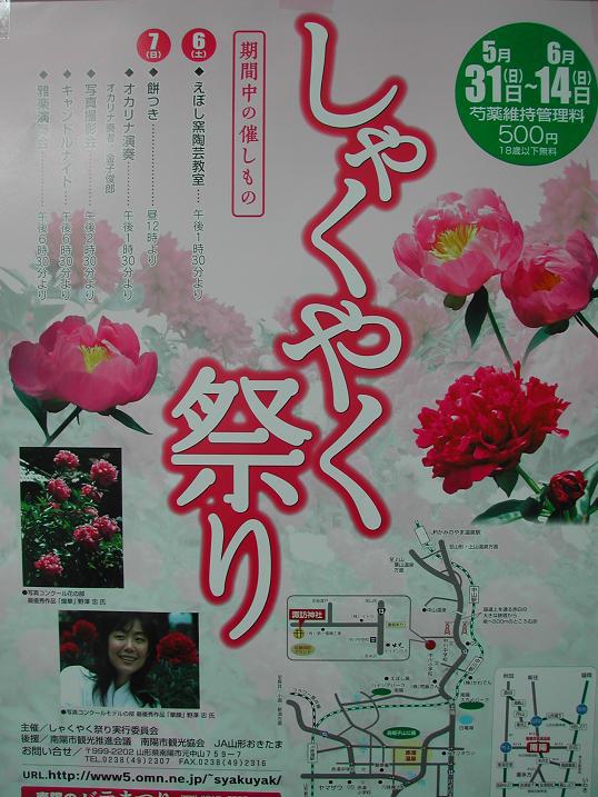 にて「しゃくやく祭り」が行われます。80種類5000株の色鮮やかな芍薬が神社境内に咲き誇り大変見事です(^^)期間中はイベントも多数行われます。ぜひお越しください♪