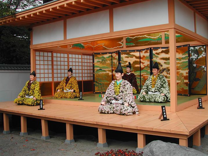 菊人形第6景は「景勝、兼続、大阪城謁見(えっけん)」です。景勝と兼続が春日山から大阪城へ移った際の、秀吉との会見での厚い歓迎ぶりを描いたものです。