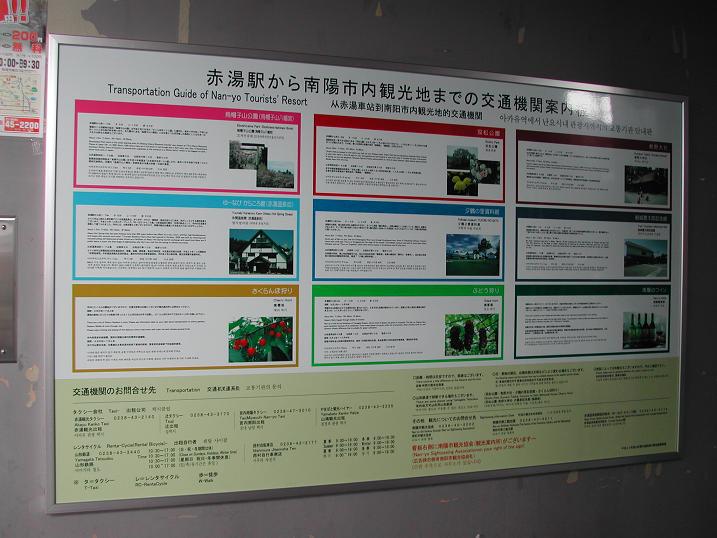 赤湯駅待合室東側入口に”外国語対応”の観光案内看板が設置されました(^^)日本語のほか、英語・中国語・韓国語で南陽市の案内が表示されています。たくさんの方に利用していいただきお役に立てますように。