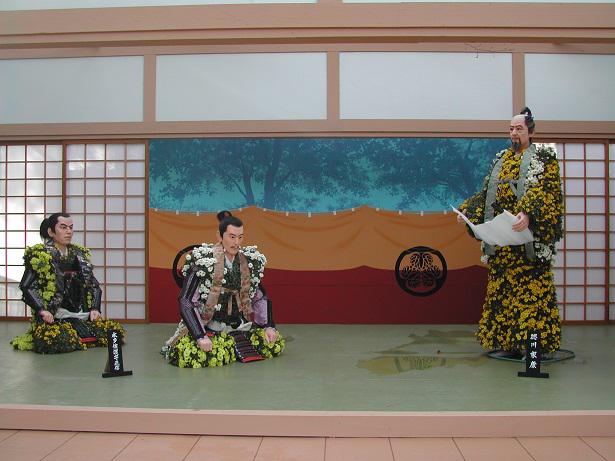 菊人形最終場面 第8景は「直江状 下野小山陣」です。上杉家の家老・直江兼続が徳川家康へ送った書簡が、かの有名な「直江状」。これを読んだ家康は手を震わせながら激怒したと言われています。