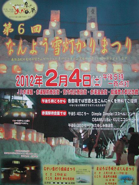 2月4日(土)に「なんよう雪灯かりまつり」が行われます。主会場はJR赤湯駅、しんまち商店街、ゆーなびからころ館、結城豊太郎記念館。手作りのミニかまくらに、午後5時に一斉に灯かりが灯ります。他にも市内各所に雪灯かりが灯されます。